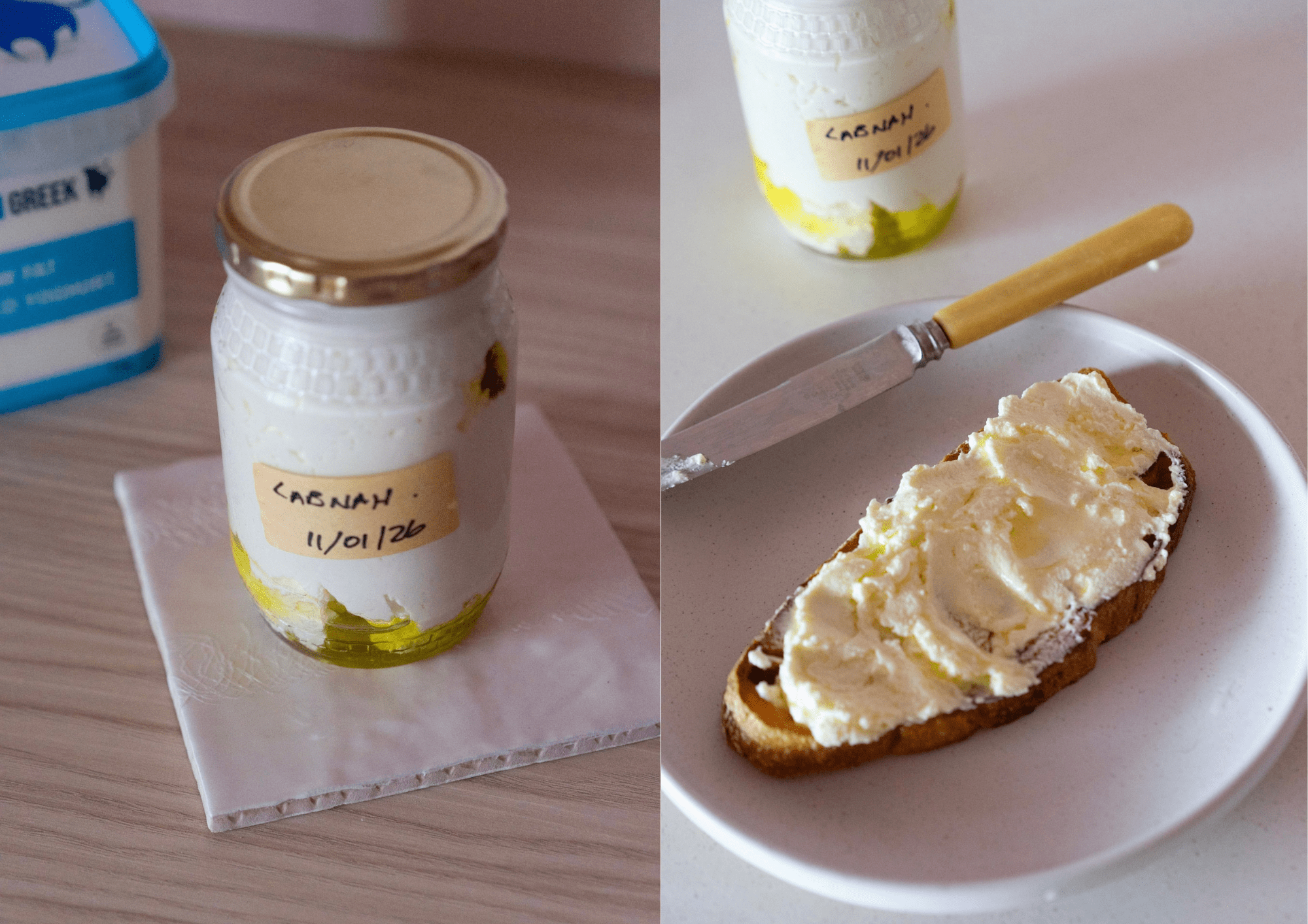 The quality of your yoghurt matters here. A thick, well-made Greek yoghurt will strain properly and give you that signature creamy texture labneh is known for.